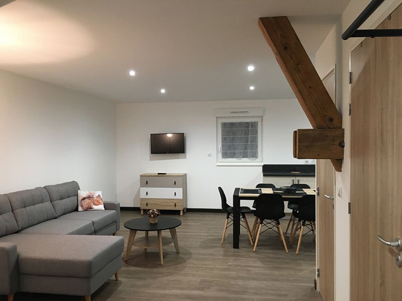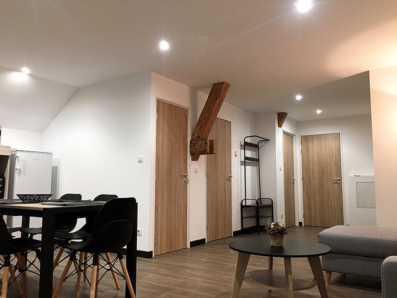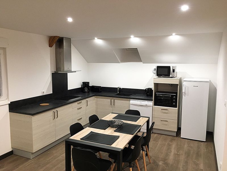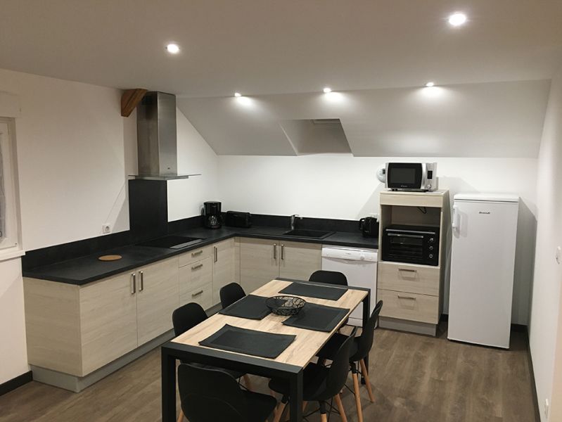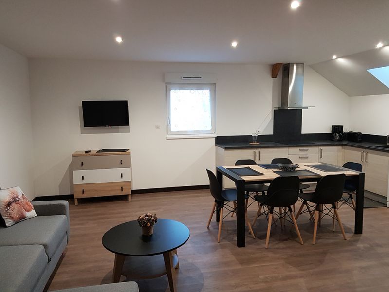 Avec entrée meuble chaussures et porte-manteaux donnant sur pièce à vivre ouverte sur 29m2 avec cuisine entièrement équipée (lave-vaisselle, hotte, induction, four, micro-ondes, grille-pain, bouilloire, cafetière + nécessaires pour 6 personnes)