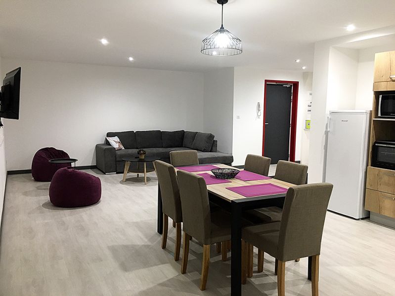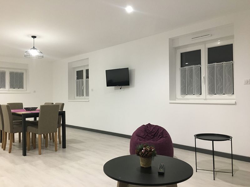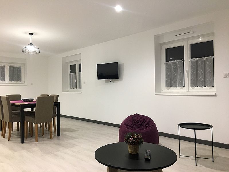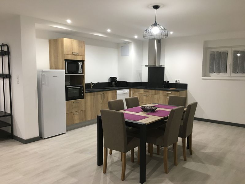 Avec belle entrée meuble chaussures et porte-manteaux donnant sur belle pièce à vivre ouverte sur 40m2 avec cuisine entièrement équipée (lave-vaisselle, hotte, induction, four, micro-ondes, grille-pain, bouilloire, cafetière + nécessaires pour 6 personnes)